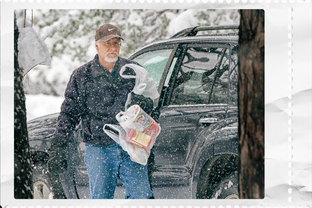 Yesterday, we awakened to snow.  It wasn’t a lot at first and there was still a little snow on the ground from the day before.  But, as the day progressed the storm increased and the snow continued to fall all day until we had almost a foot of snow. The Sierras have been suffering this winter from lack of snow and when it doesn’t snow we worry about having enough water in the summer and, since I live in the forest, we worry about fire.  So, the snow was a welcome relief.