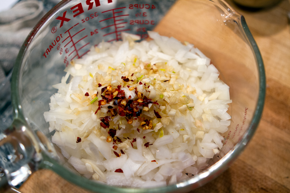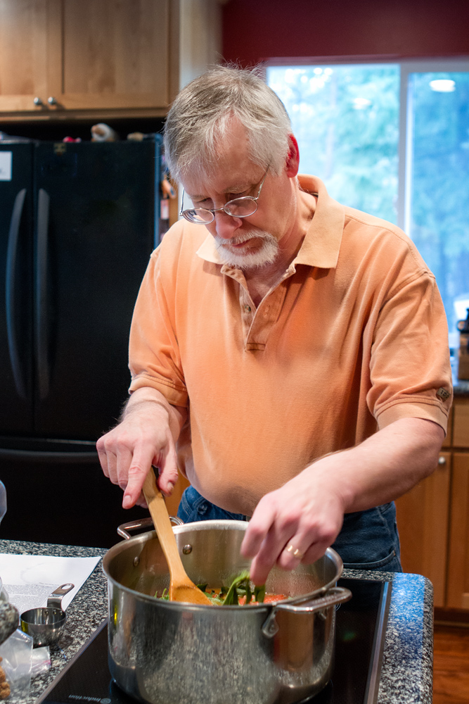 Then he stirred it around and let it sit so the flavors could get to know each other.  (Lots of howdy-doin’s going on in the kitchen.)