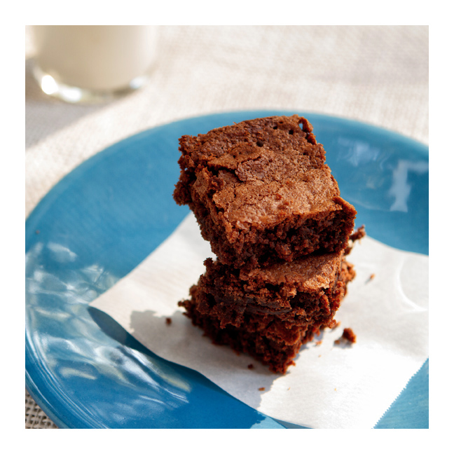 I must say that I picked out the blue plate to match the blue stripes on the straw and because I like blue and brown together.  However, it is my firm opinion that brown food does not photograph very well and as tasty as these brownies were, I thought they needed a little something to make them look truly scrumptious.