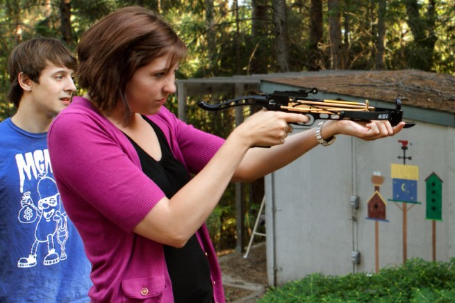 At any rate, the usual riff raff was present for the birthday celebration.  One of the gifts that my baby got from his oldest-and-should-know-better brother was a cross bow (!!!).