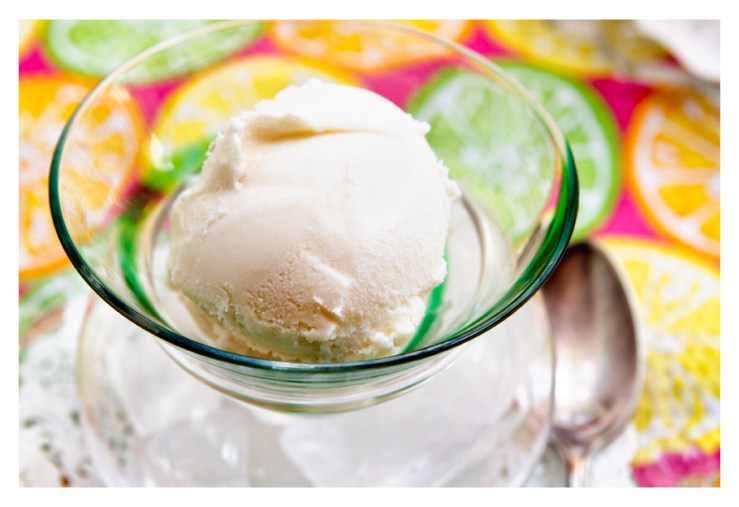 1. In a large bowl, whisk together all ingredients. Transfer to an ice-cream maker, and freeze following manufacturer’s instructions. Store in an airtight container.