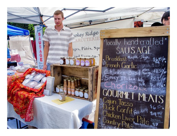 Yes, there were all kinds of things to look at and to buy. I ended up purchasing some torpedo red onions, some peach colored beets, an artichoke flower and some fresh cured bacon.