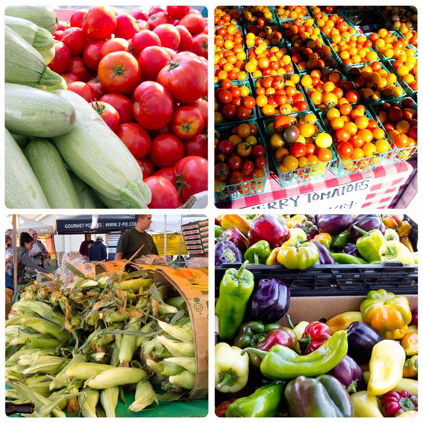 Tomatoes, cucumbers, corn and peppers at the Farmers Market