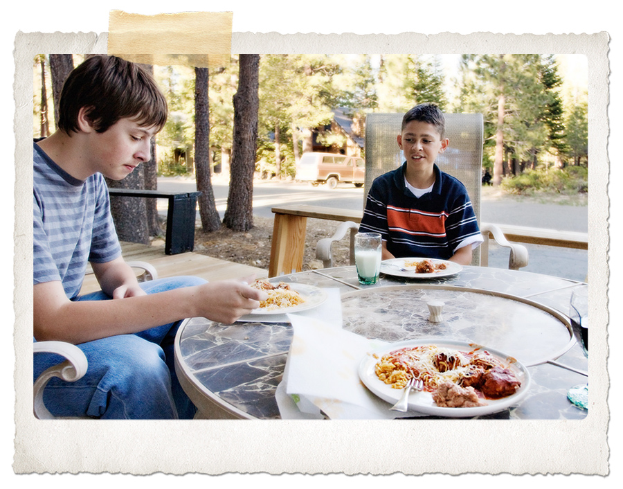 Neither youngest son nor his friend look very thrilled with my meal