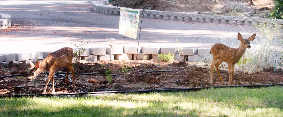 These little home wreckers are quite young. The blocks in the background are only about 6-8 inches high each. The deer are barely taller than the two courses of the blocks. However, the buggers eat and eat and eat and then they grow and then they have babies and then they teach their babies to come to my house so that they can eat and eat and eat.