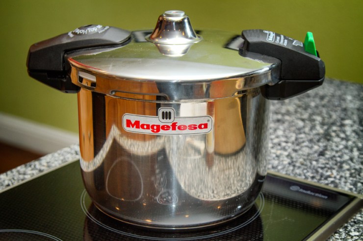 Yes!Chef! and I are from the era that we remember our moms and grandmothers using a pressure cooker, but we have never used one ourselves.  Ever since the microwave came into play, the pressure cooker has gone by the wayside.  After using the pressure cooker, I do not understand why that happened.  No one really uses microwaves to cook things.  In fact, Gordon Ramsay gets all wonky when he finds out cooks are using the microwave on Kitchen Nightmares because the food does not taste good when it is microwaved.  Don’t get me wrong.  We use the microwave all the time to warm up a little leftover soup or chili or melt some chocolate or butter.  But we don’t cook with it.  It cannot create the depth of flavor that comes from other types of cooking.