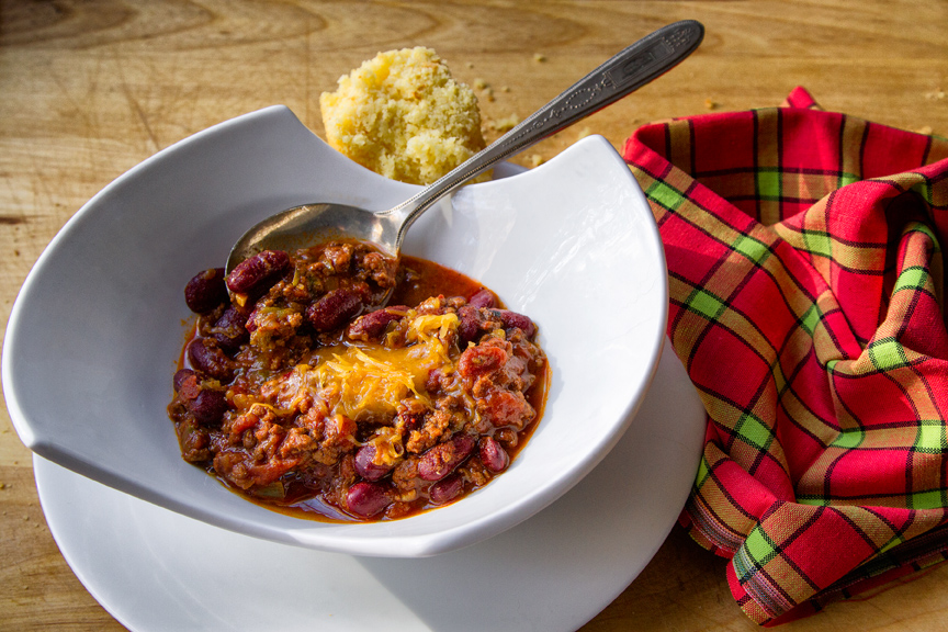 Looking out the window at our chilly back yard this morning made me happy that we had some hot chili to have for lunch