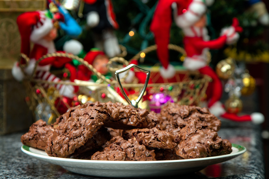 Into the oven they went until they were cracked and dry. They are mostly a meringue cookie, so they are chewy and their flavor is a little like an almond joy. The elves were happy with the cookies and if you are not able to eat gluten these cookies will satisfy your sweet tooth for cookies. Even if you don’t watch your gluten, you will enjoy these chewy morsels. Yes!Chef! gave them his stamp of approval (If truth be known, I’m trying to cut down on Yes!Chef!’s gluten because I think he might be a bit allergic. We shall see.)
