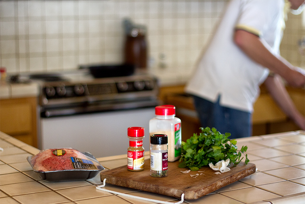 • 2 1/2 lbs ground beef (you can use lean meat, if you like, but more fat is more flavor.)