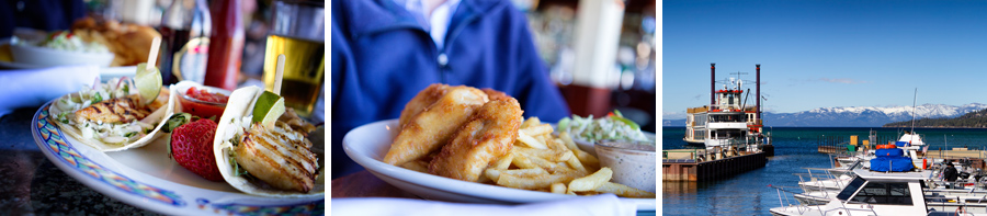 At any rate, I did find a few pics that we took the week after the Superbowl when we were up at Tahoe for the day.  We stopped at a great little restaurant right on the lake called Riva Grill.  I love this restaurant and the food is quite good.  The view is one of the best on the lake and if it’s warm enough you can eat outside right on the dock.  Y!C! had fish and chips and I had fish tacos.  We both had a beer and then we took a little walk out on the pier to see the Tahoe Queen and some other large touring boat.  It was a nice day.  These pics made me happy, so I thought I would include them in this post.