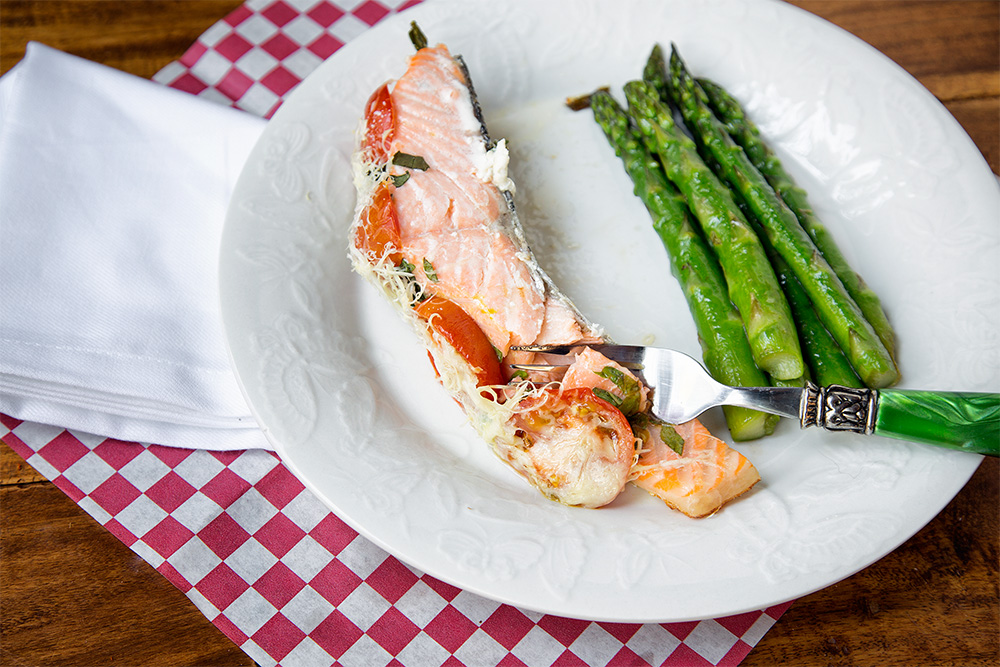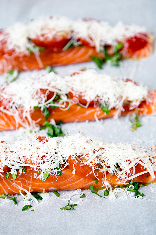 Salmon with Tomatoes, Basil and Parmesan Cheese