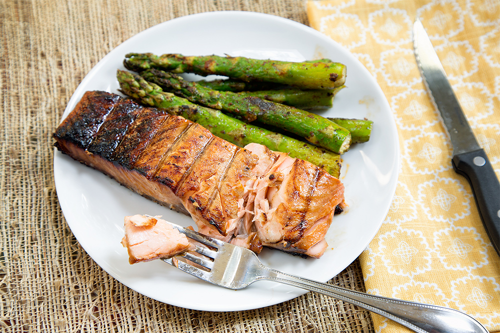 Boom! Another fish dish with no fuss nor muss. I loved the Asian flavors mixed with the smokiness of the barbecue. It was the perfect summer meal, paired with spicy seasoned asparagus.