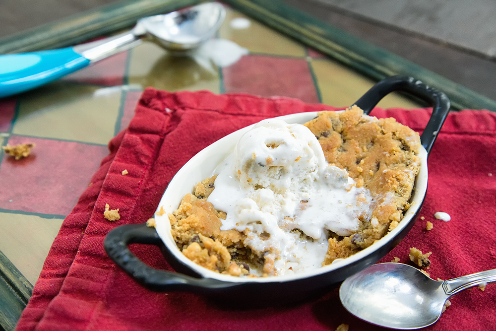 My youngest son asked me to make him a pizookie.  I had never  heard of it before, but he had tried one in a restaurant and really liked it. So, I looked up the recipe and made it for him.  I wanted this to look like I cooked it in this little ceramic pan (which I hadn’t), put some lovely ice cream on the top, which began to melt because of the hot cookie (it wasn’t hot when I took this photo.) And then I wanted it to look like someone had taken a bite out of it because they couldn’t wait for it to be served.  Instead, it looks like a hot mess with crumbs flung everywhere and a messy spoon in front and in back. And, it doesn’t come close to looking like I cooked the cookie in the pan.  Besides, the point of a pizookie is that it is a cookie that is cooked in a small pizza pan.