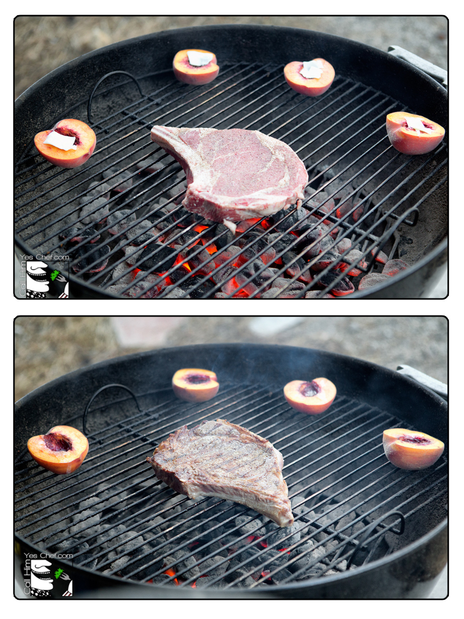 Grill up the peaches while you are grilling the steak (get a good ribeye).