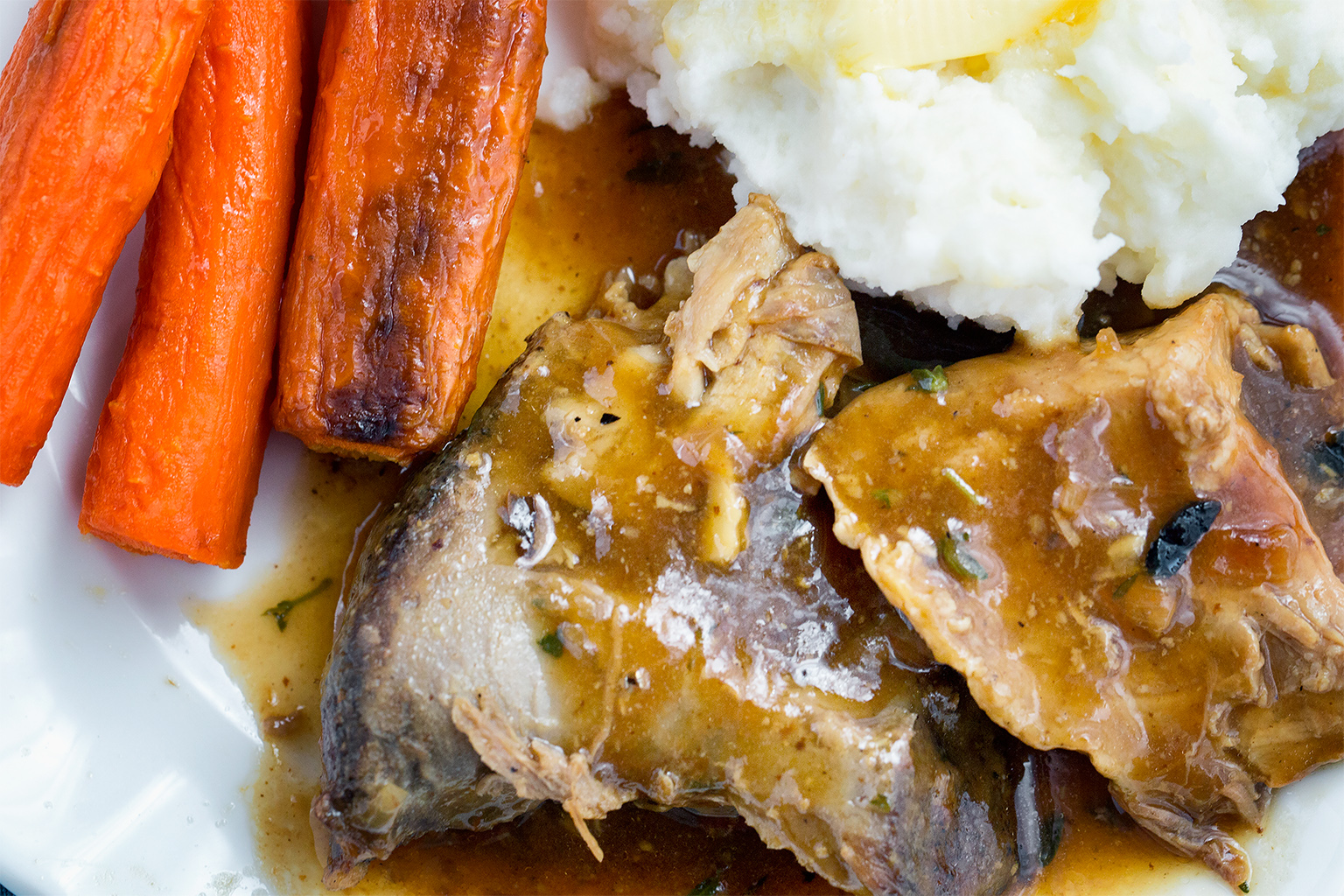 Roast Pork with Gravy, Mashed Potatoes and Roasted Carrots