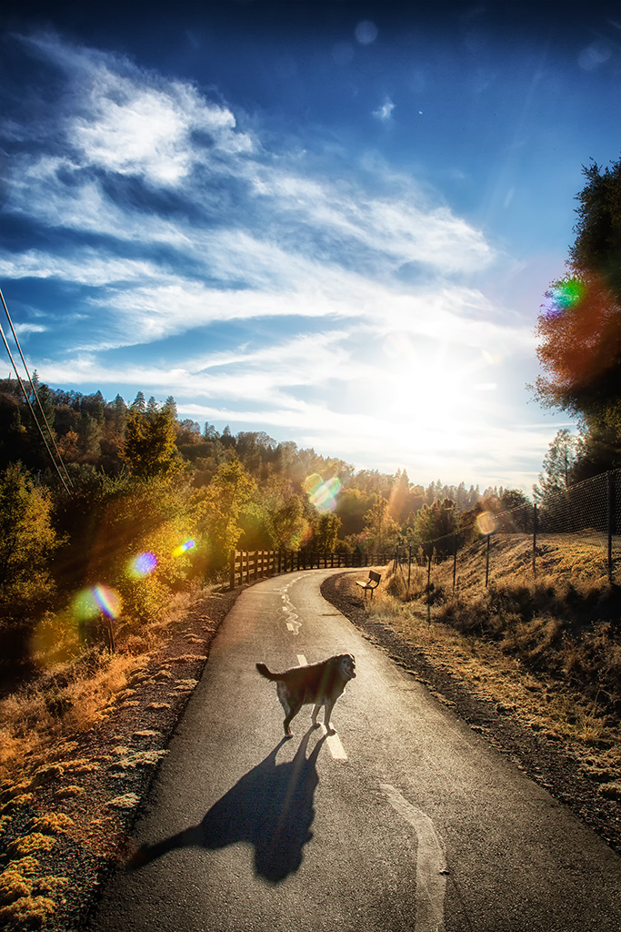 The trail is quite long and you can join it in many different places.  Sometimes it goes over highway 50.  Obie T. did not like going over the freeway and so I probably won’t take him back this way.  But, there are miles and miles of trail to walk or ride your bike or horse on The El Dorado Trail.  It is a beautiful refurbished trail now and you will thoroughly enjoy the walk and your dog will thank you by licking your face.
