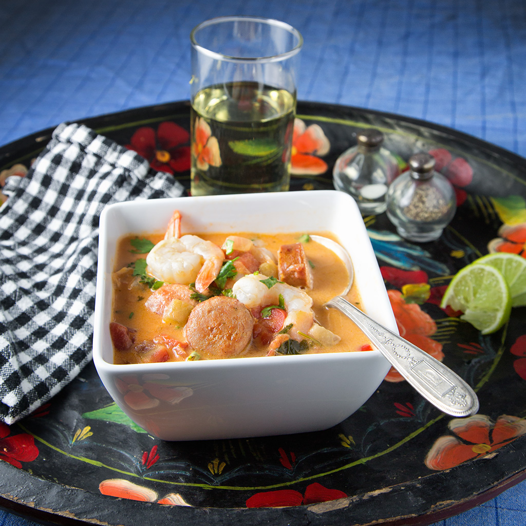 Brazilian Shrimp and Andouille Stew and a good crisp white wine