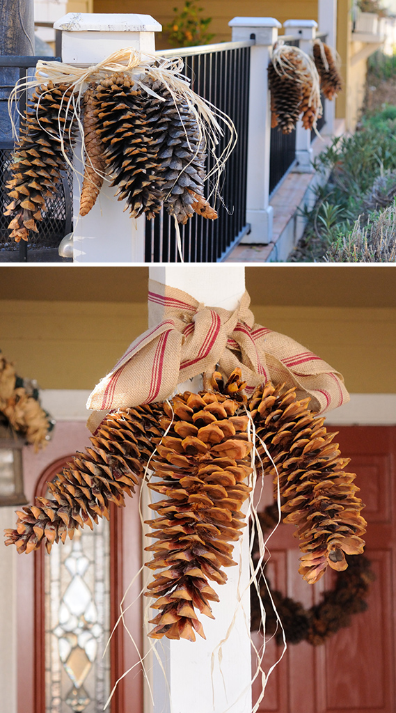 Look at the lovely natural decorations that they have on the outside of their home.  This reminds me that I have a couple of Sugar Pines on our property.  Maybe I should gather the pine cones up for decorating next year rather than using them for kindling.  Maybe Mrs. Thompson will come to my house and help…
