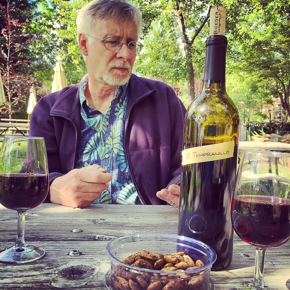 However, before he left, we were able to do a few things around town together. Now that we live in Placerville, we have been visiting some of the local wineries sometimes in the evening for a glass of wine. There is one winery, Boeger Winery, that is actually located in Placerville and is the oldest winery in the area…surviving prohibition by providing wine to the monks. It is a beautiful little winery with a lovely picnic area. The other night we stopped by and purchased a bottle of wine and just enjoyed the evening.