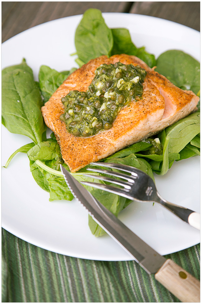 Crispy Salmon with Lemon, Basil and Caper Sauce