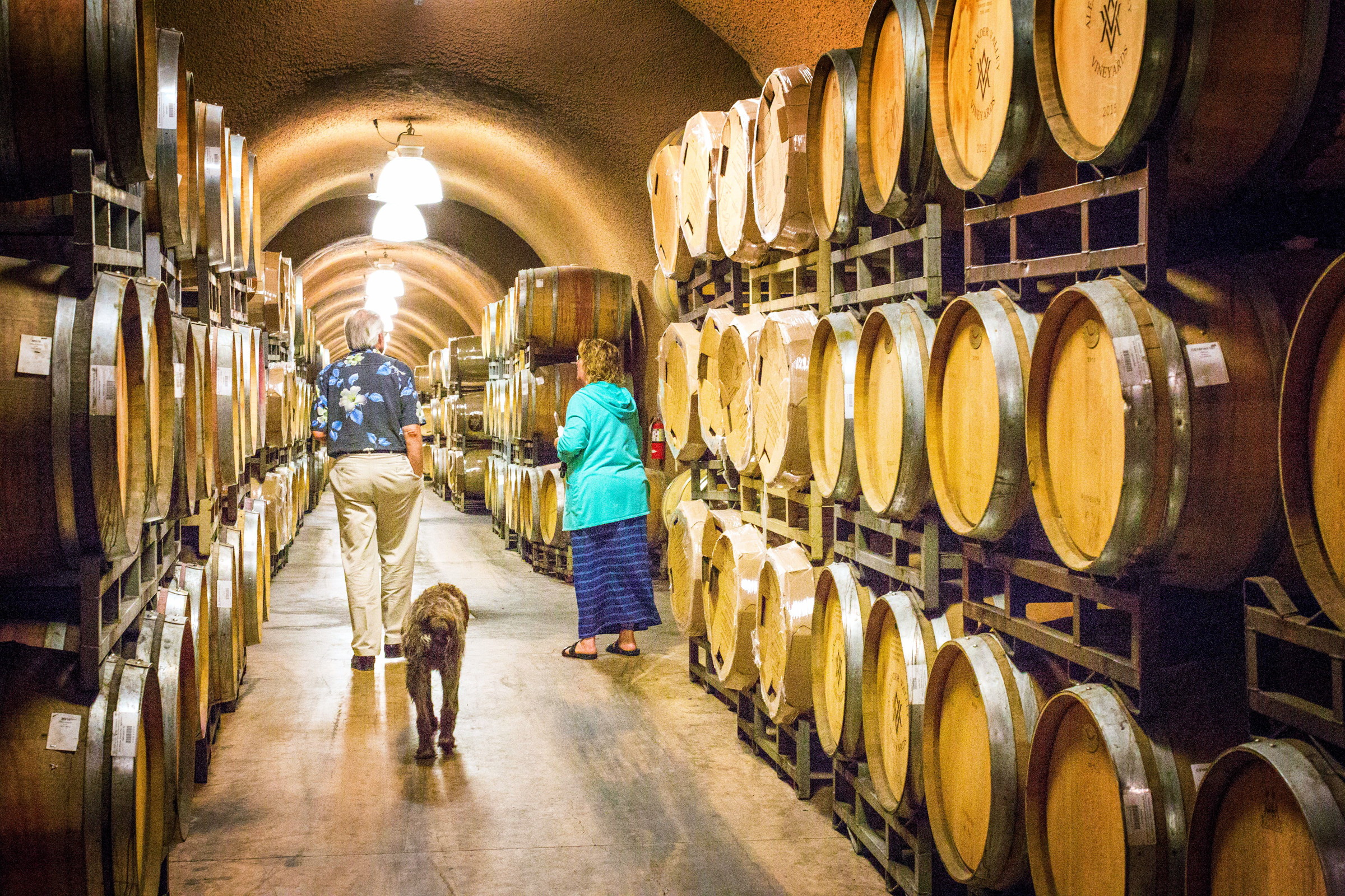 We were then taken on a tour of the wine caves which were cool and huge. The tour guide was accompanied by a friendly dog. The tour guide was friendly and knowledgeable.