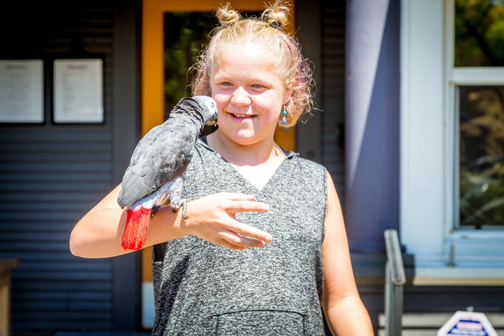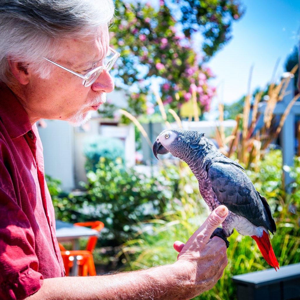 When we were finished, Corby and I wandered outside to wait for the rest of the group. While we were waiting, a local gentleman came walking down the street with a parrot on his shoulder. He stopped and let us meet the bird, who was quite friendly.