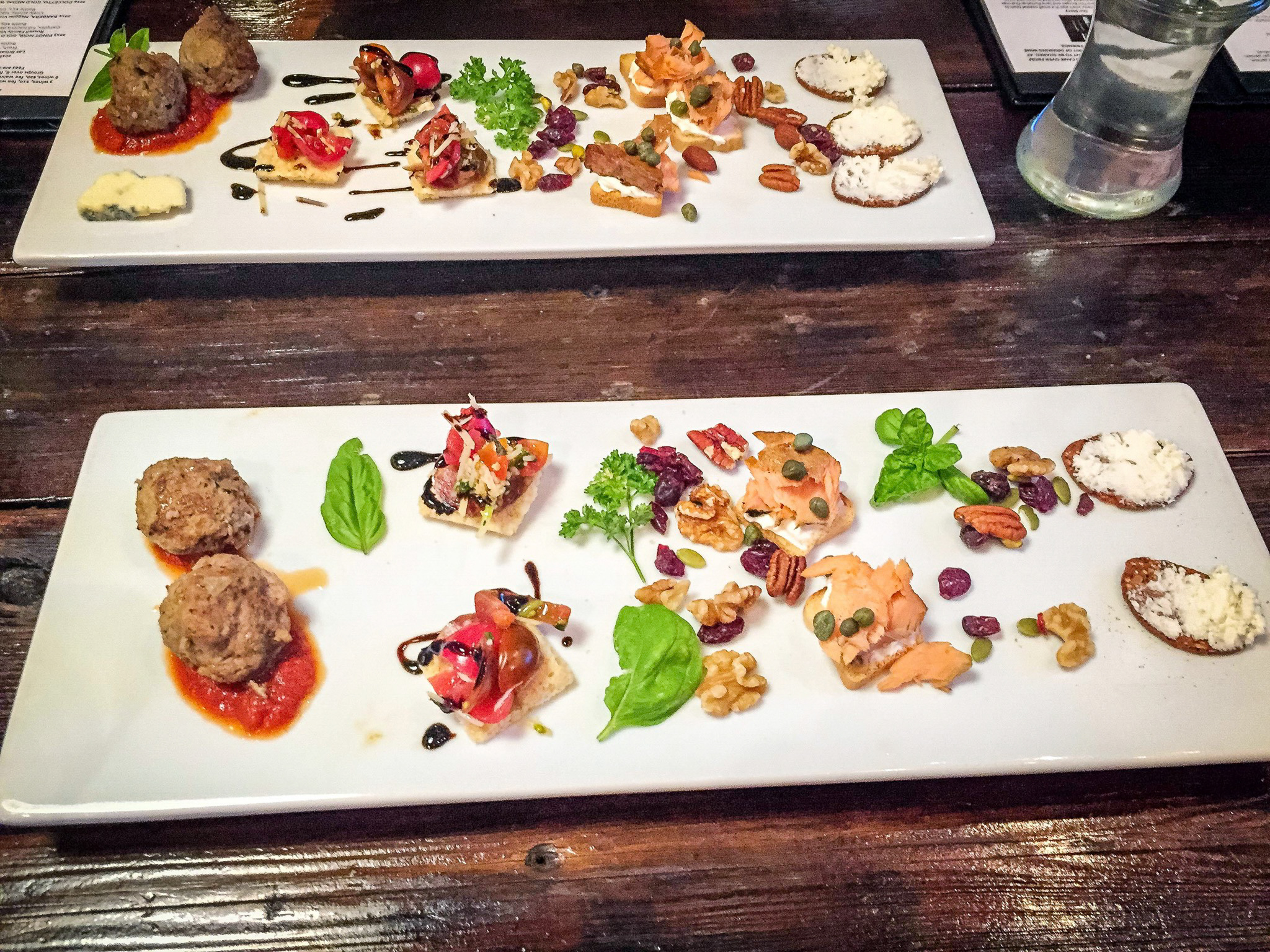 There were all kinds of tasty little bites or Amuse-Bouche on the plate and attractively arranged. On the plate were meatballs, smoked salmon on a cracker with a creamy cheese, some pickled veggies and a goat cheese on a crisp cracker. There were also nuts and seeds. All the little bites went quite well with the wines, a Vermentino (white wine), a Pinot Noir, a Barbera and a Zinfandel