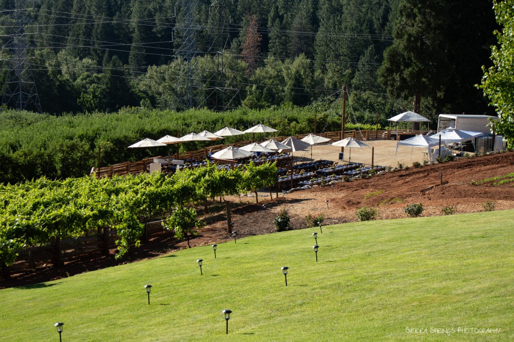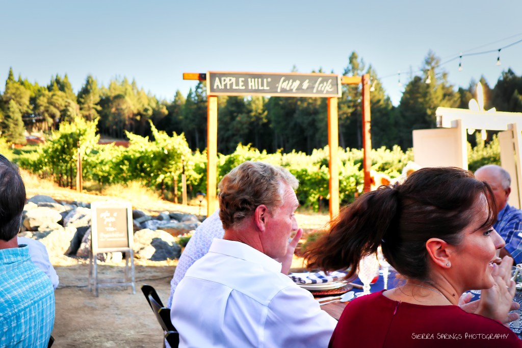 The event was held at Delfino Farm, one of the local Apple Hill Farms, in the middle of vineyards, apple and Christmas trees. It is a beautiful farm that has been a part of Apple Hill for a very long time. I remember taking my children here when they were young and they loved to roll down the beautiful grassy hill. We would bring a picnic lunch and then buy a little dessert to finish off our lunch. Back then, this place was known as “Kids Inc.” The “Kids” are now running the place so they changed the name of the Farm to the family name, Delfino.