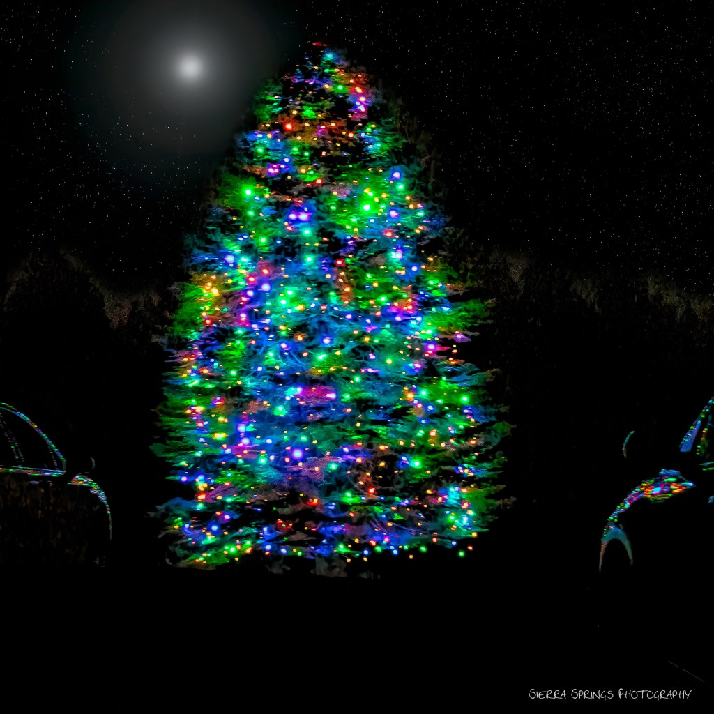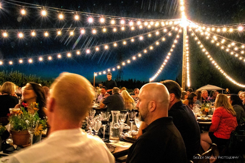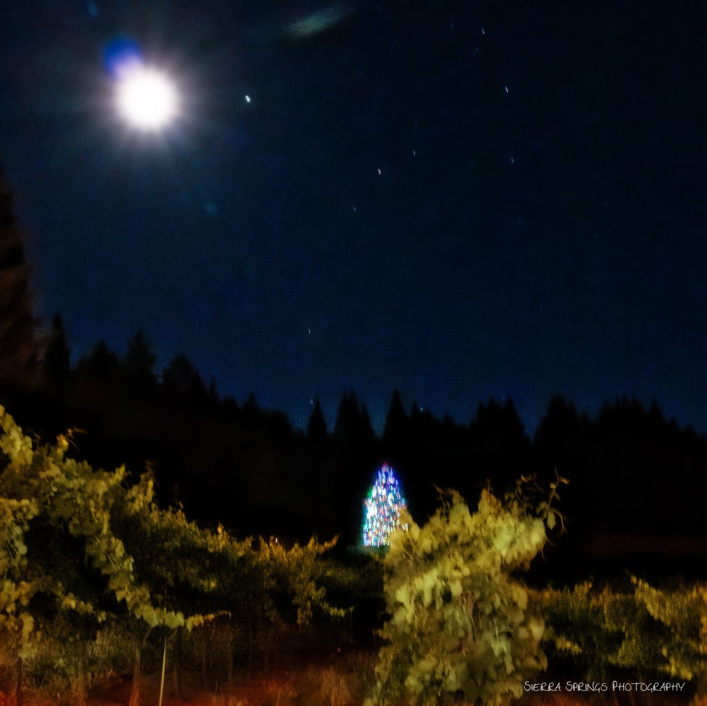 As the evening wore on there were chefs, community leaders, farmers and the owner of Delfino Farms talking about the event, the food that was prepared and the wine that was poured. After that, we all walked back up the hill and many, many different types of desserts were available. It was quite dark by then, so I took the desserts home (plus we were quite full). They were all made by local Apple Hill farmers and chefs and they were all delicious. As we were walking up the grassy hill to the barn, a Christmas tree was lit to represent the Apple Hill Christmas Tree Growers.
