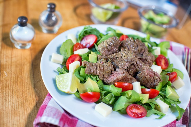 Marinated grilled skirt steak salad with cilantro-lime dressing